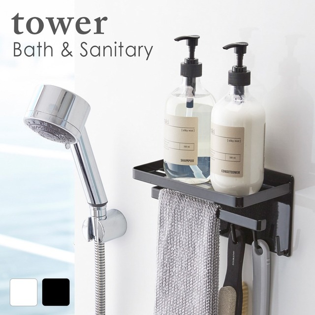 マグネットバスルームシャワーフック タワー ホワイト ブラック サニタリー おしゃれ 人気