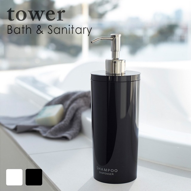 ツーウェイディスペンサー タワー ラウンド シャンプー ホワイト ブラック サニタリー おしゃれ 人気