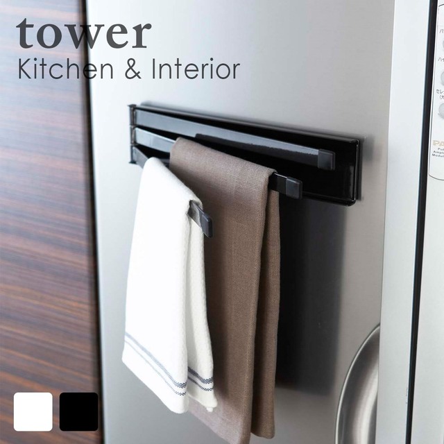 マグネット布巾ハンガー タワー ホワイト ブラック キッチン おしゃれ 人気