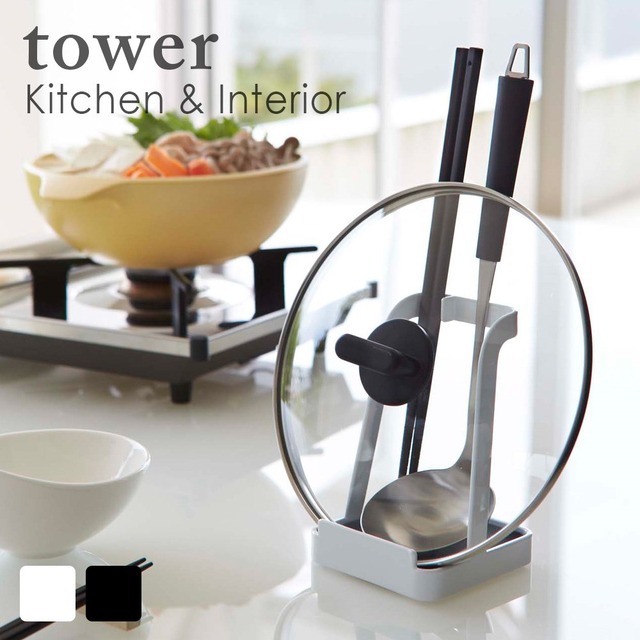 お玉&鍋ふたスタンド タワー ホワイト ブラック キッチン おしゃれ 人気