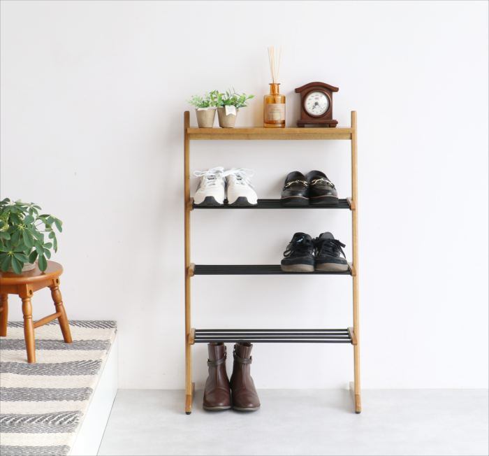 玄関を心地よく彩る、毎日にぴったりのシューズラック。木目とスチールが織りなす洗練されたデザインは、さまざまなインテリアに自然と馴染み、玄関の雰囲気を一層引き立ててくれます。