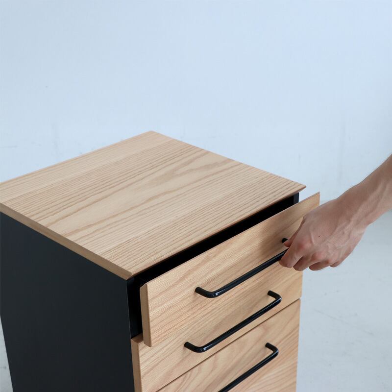 【素材】:オーク突板(MDF) 、本体:黒メラミン化粧板、キャスター