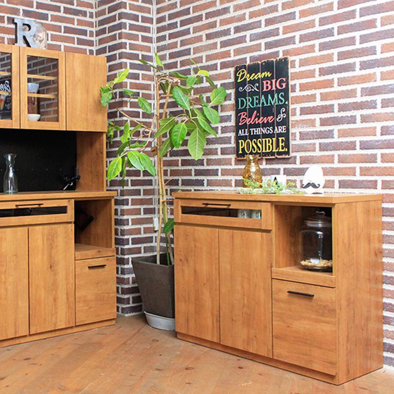 【素材】:天板:ベニヤ、本体:プリント化粧板、前板:強化化粧板、ガラス:3mm透明ガラス、取手:スチール(粉体塗装)、1口コンセント付き