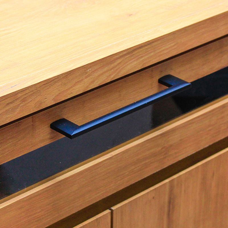 【素材】:天板:ベニヤ、本体:プリント化粧板、前板:強化化粧板、ガラス:3mm透明ガラス、取手:スチール(粉体塗装)、上段: 2口コンセント付き