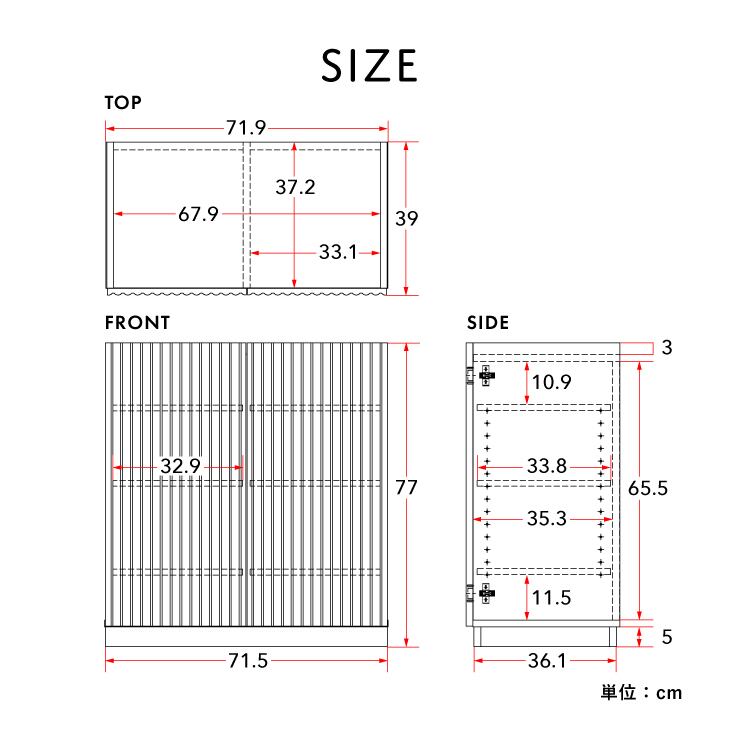 【本体サイズ (約)】:■商品サイズ:W719×D390×H770mm●[扉内内寸]W331×D353×H655mm[移動棚サイズ]W329×D338×H15mm★耐荷重:[天板]20kg、[移動棚]約7kg