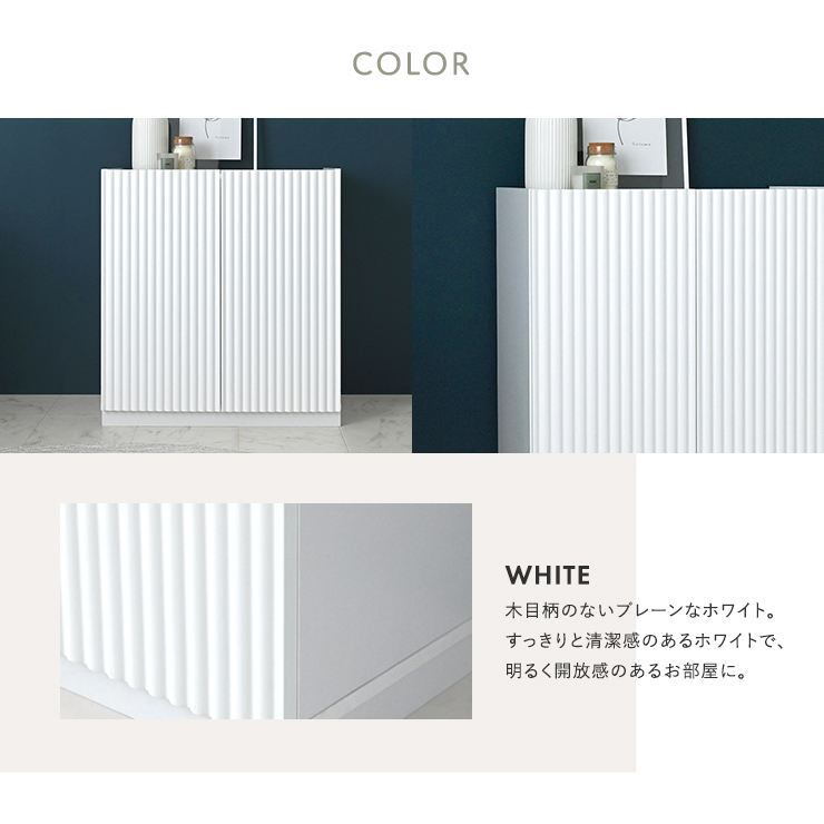 シンプルなフォルムに、立体的なウェーブのデザインが魅力的なリビング収納シリーズ。
