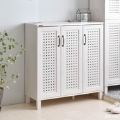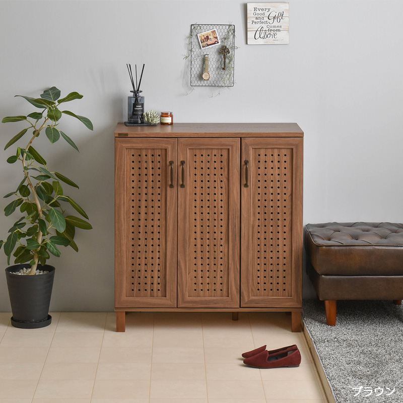 通気性が高くておしゃれ。パンチングが特徴のデザインシューズストッカー。