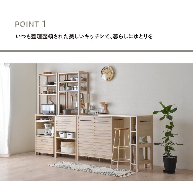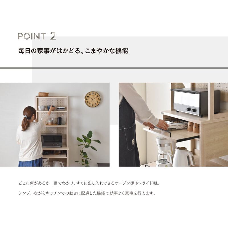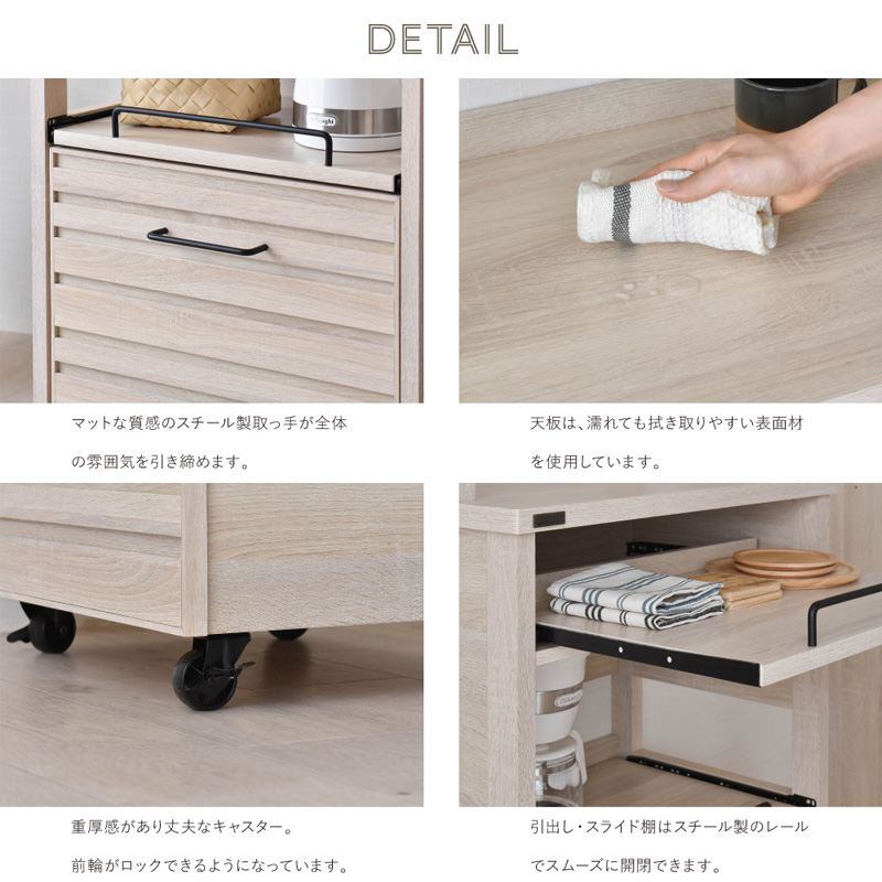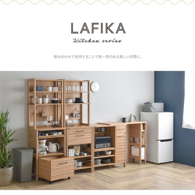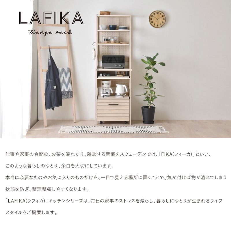 LAFIKA(ラフィカ)レンジラック(ハイタイプ・60cm幅) キッチン キッチン収納 レンジラック レンジボード レンジ台 オープン収納 キャスター付き 引出し 有孔ボード ペグボード おしゃれ 北欧 ホワイト白 木目調 幅60cm ハイタイプ LAF