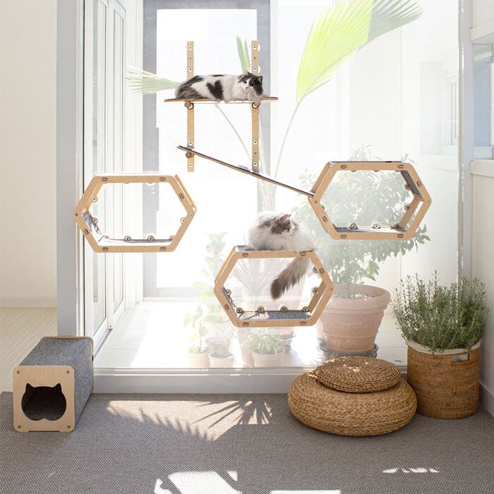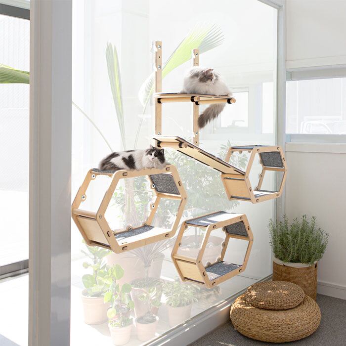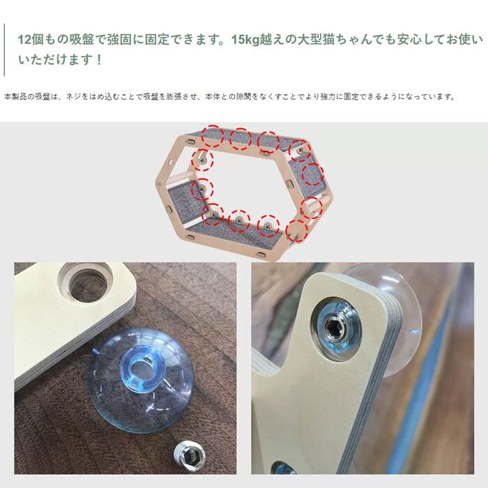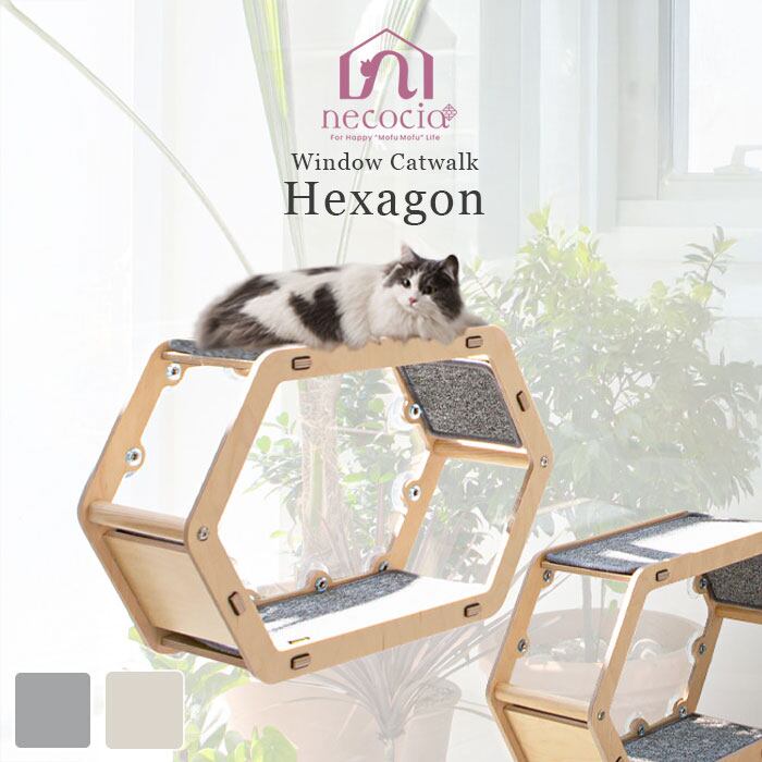 猫用キャットウォーク 吸盤式ヘキサゴン 窓に簡単設置 おしゃれ室内アスレチック 北欧 おしゃれ 人気 necocia キャットウォーク