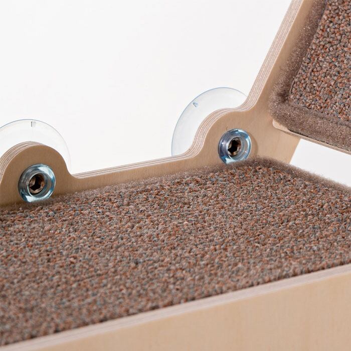窓などお好みの場所に簡単に設置可能で、気軽に模様替え感覚で再設置も可能な自由度の高いキャットウォークに仕上がっております。