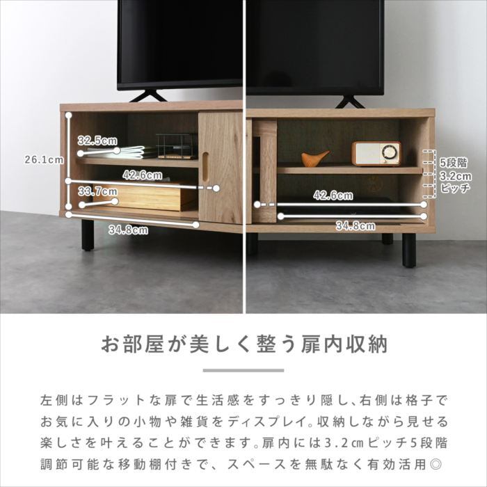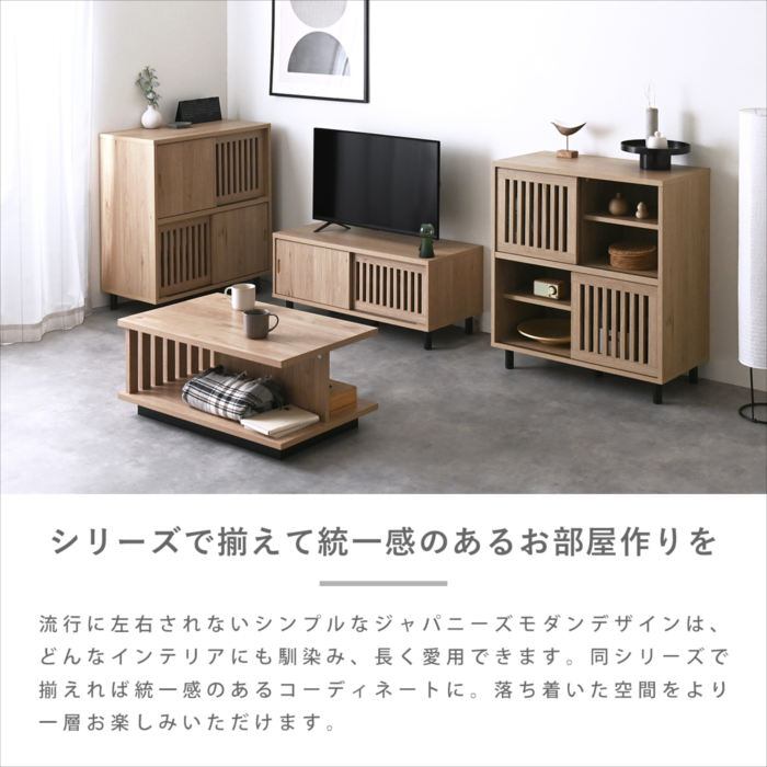 生活感をおしゃれに隠す、格子デザインのローボード。