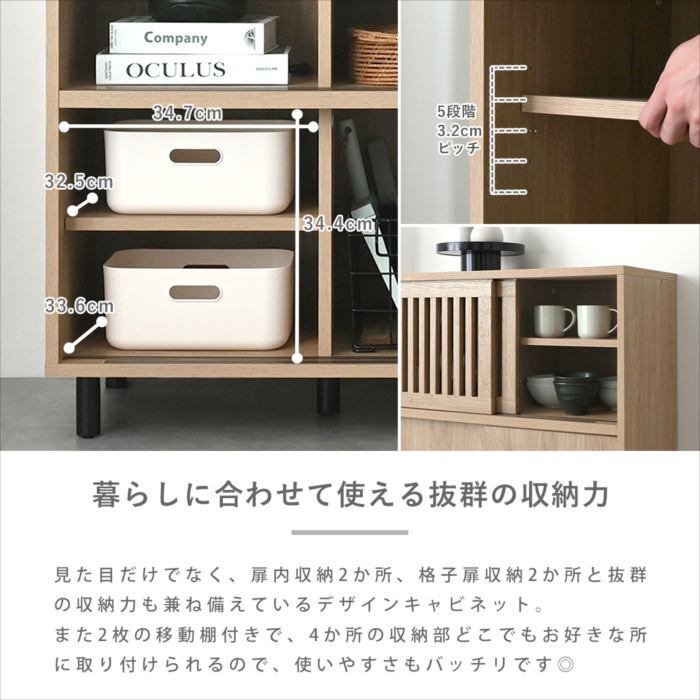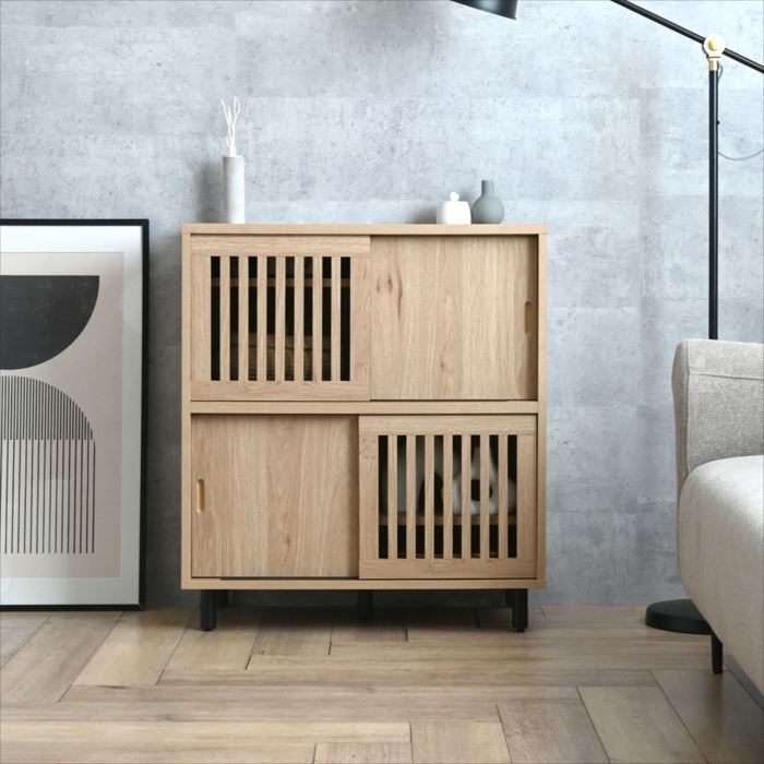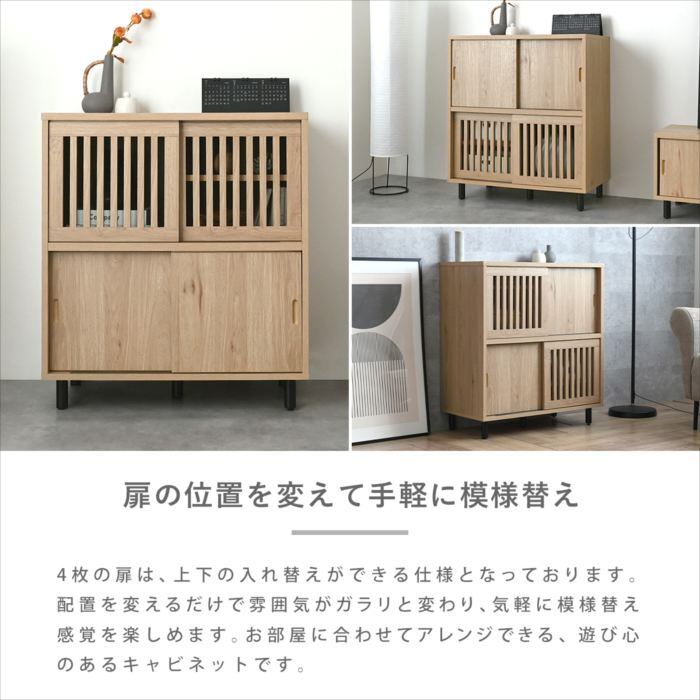 キャビネット 収納 幅75 格子 スライド扉 引き戸 リビング収納 ラック チェスト リビングボード サイドボード 棚 木製 おしゃれ シンプル ナチュラル モダン 脚付き <ヴィットキャビネット BU85-75C> 北欧 おしゃれ 人気