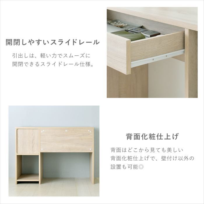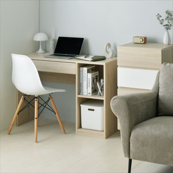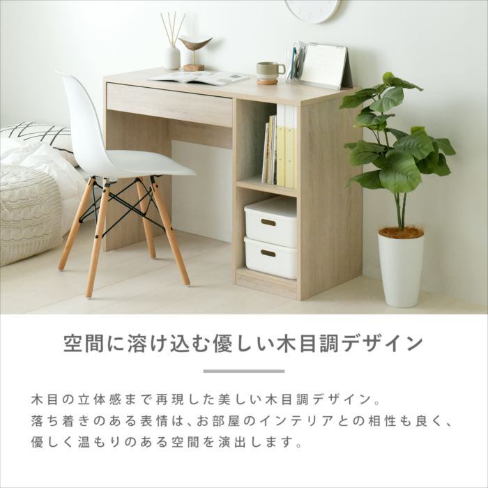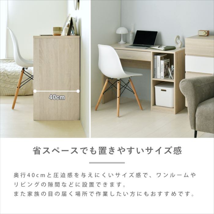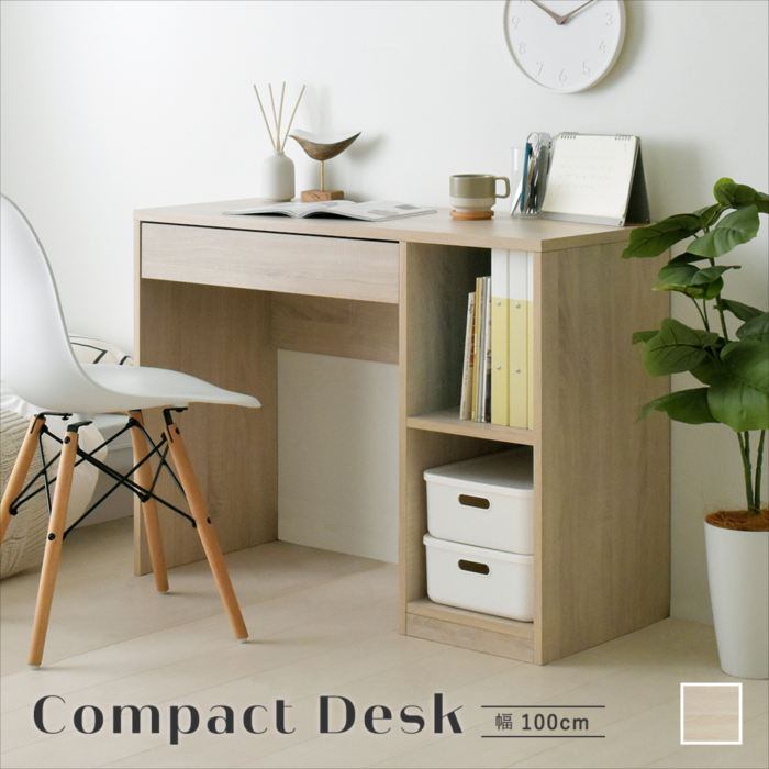 無駄のないシンプルデザインに、豊富な収納力を詰め込んだコンパクトデスク。見栄えも美しく、機能的なデスクで快適なワークスペースを。