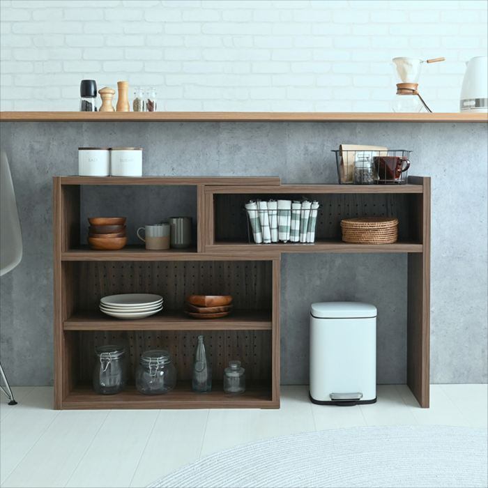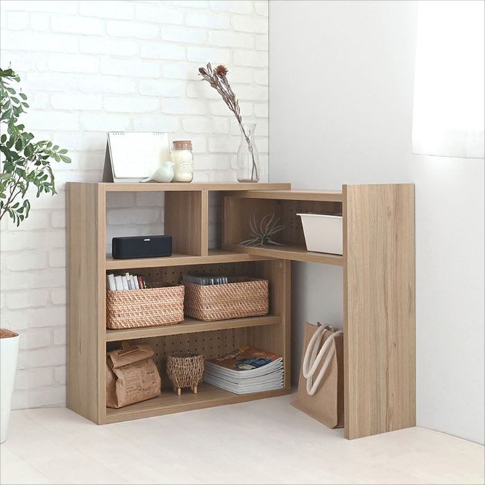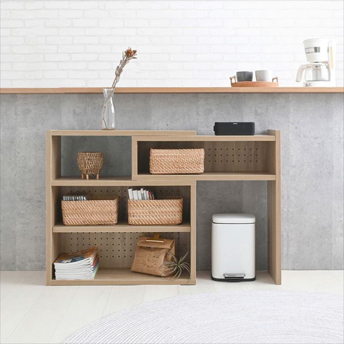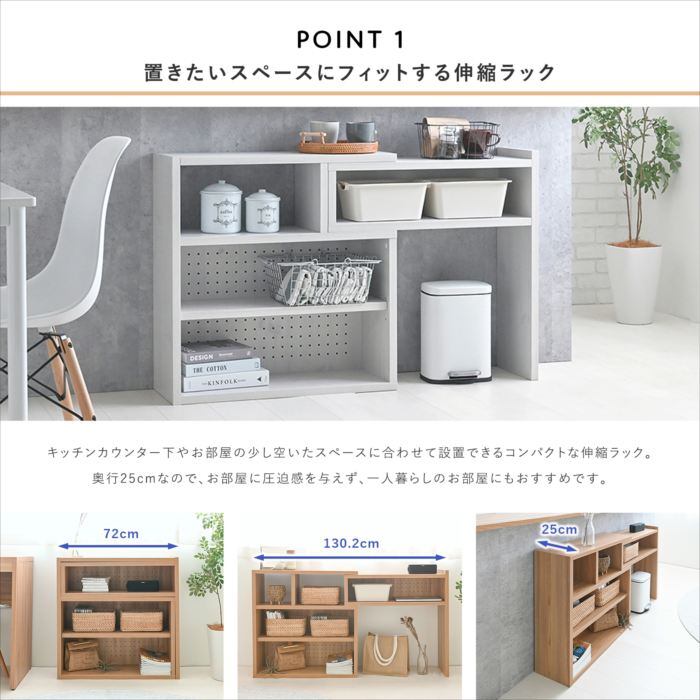 ラック シェルフ デザインシェルフ 棚 伸縮 伸縮棚 ディスプレイ 収納 リビング収納 カウンター下収納 幅72cm 72cm 木目調 グレーナチュラル 茶 LIKE ライク 北欧 おしゃれ 人気