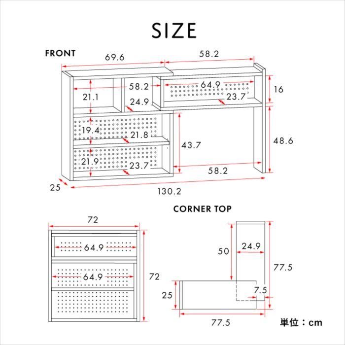 ■本体サイズ:幅720〜1302×奥行250×高さ720mm