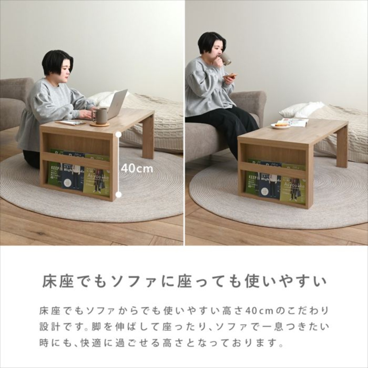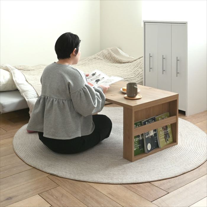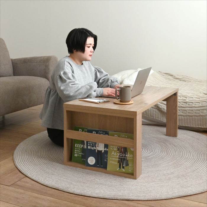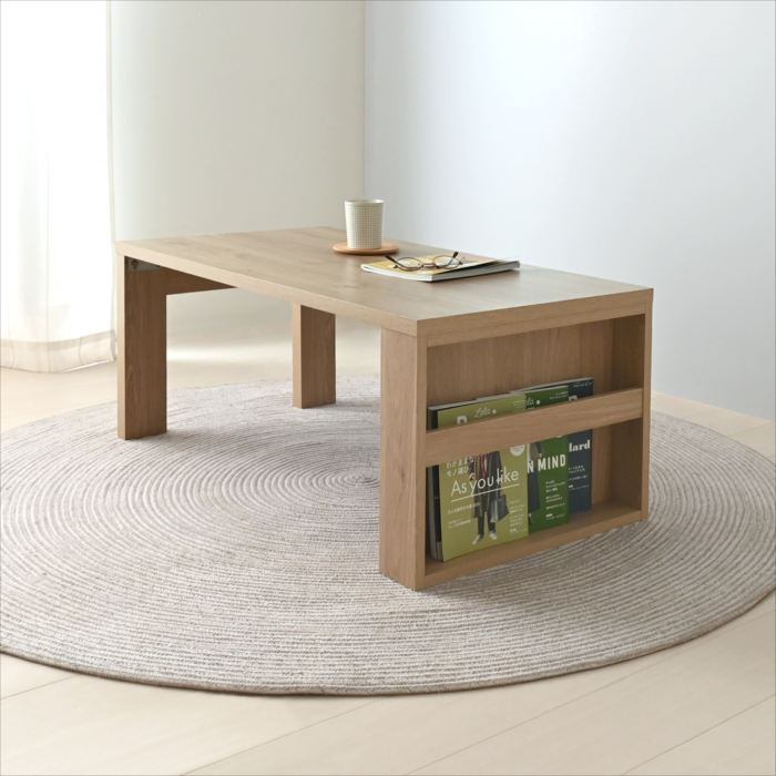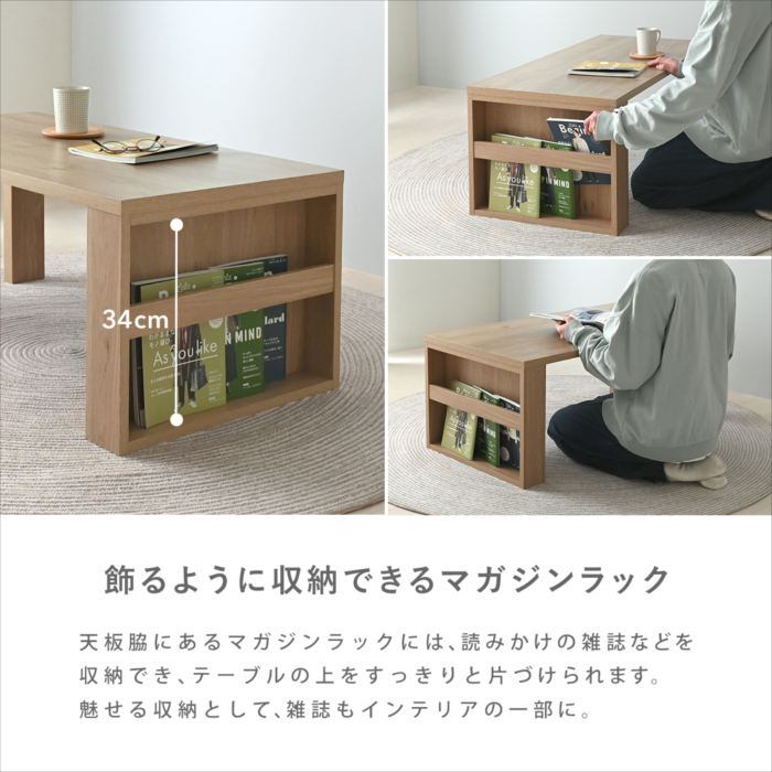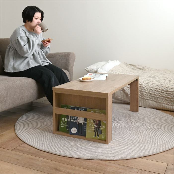 木目調が美しい、マガジンラック付きセンターテーブル。