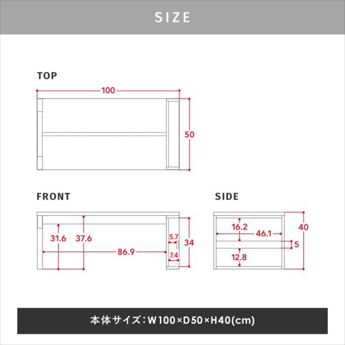 ■本体サイズ:幅1000×奥行500×高さ400mm