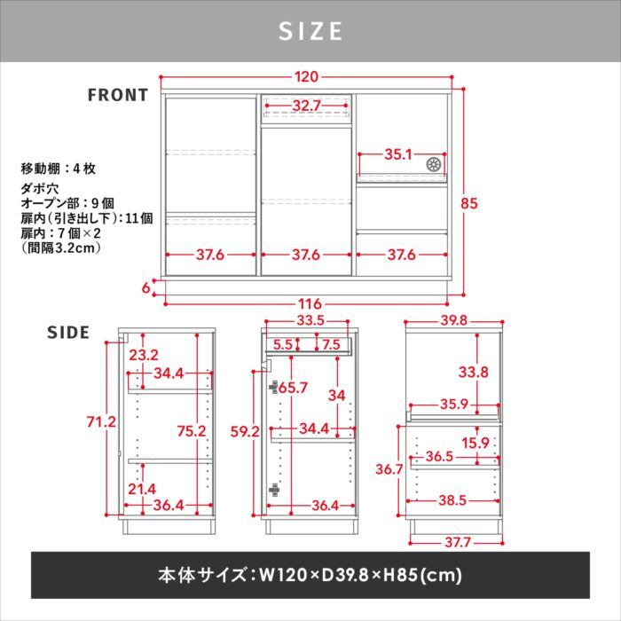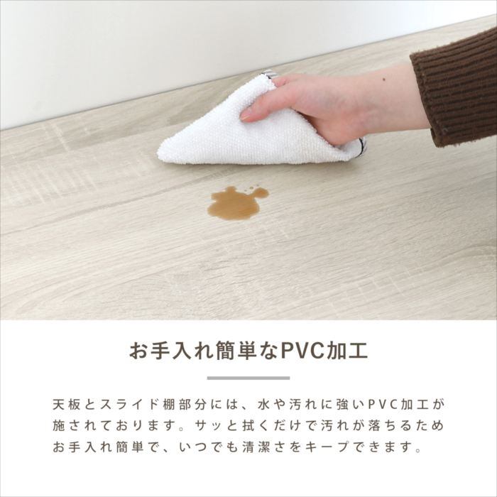 ★耐荷重:[天板]30kg [引出し]5kg [移動棚]5kg [スライド棚]7kg