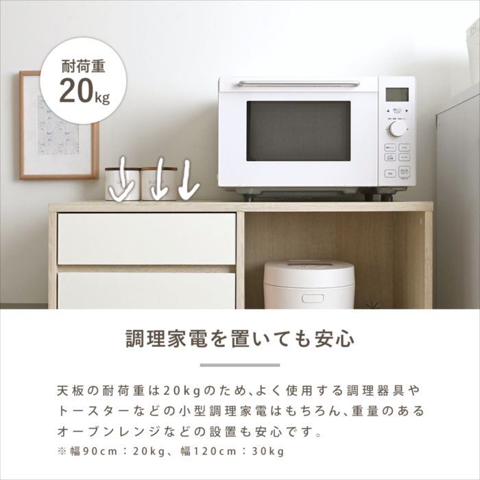 レンジボード 幅120cm 食器棚 ロータイプ レンジ台 キッチン収納 キッチンカウンター 大型レンジ対応 キッチンボード スライド 引き出し オープン収納 <レンジボード OR85-90L/OR85-120L 2サイズ> 北欧 おしゃれ