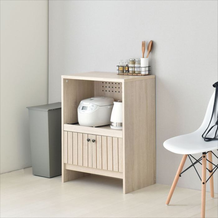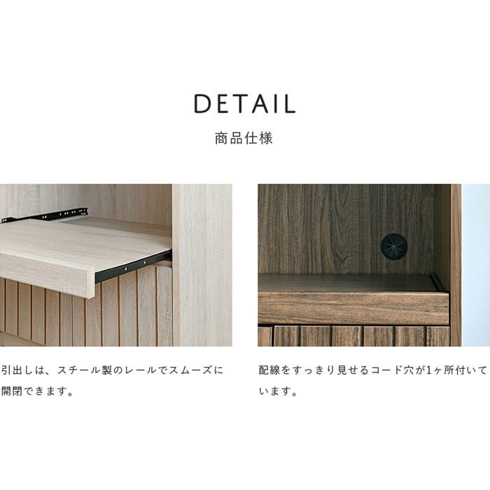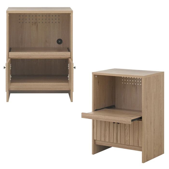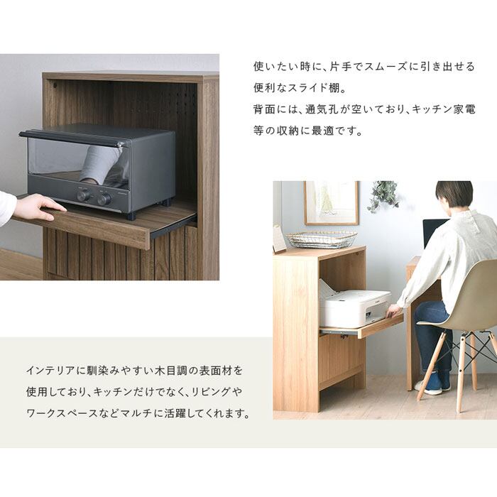 【素材】:[本体]プリント紙化粧繊維板[天板・スライド棚]合成樹脂化粧繊維板