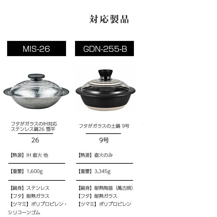 HARIO MN-255ガラスフタ(9号用) ハリオ フタがガラスの土鍋 F-MN-255 MN-255 部品 MN-255B MNN-255-B MIS-26 フタがガラスのIH対応ステンレス鍋26雪平 GDN-255-B スペア 日本製 耐熱ガラス