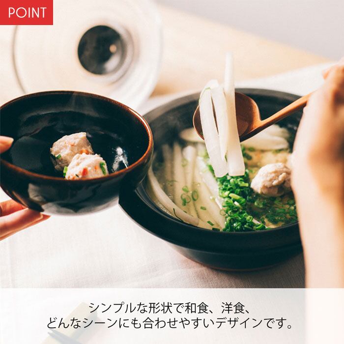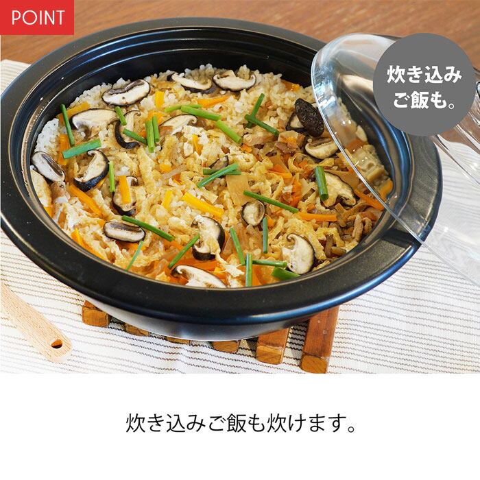 中身が見え耐熱ガラス製のフタで普段使いしやすい土鍋です。