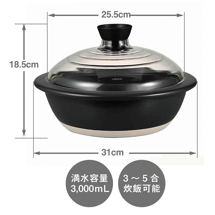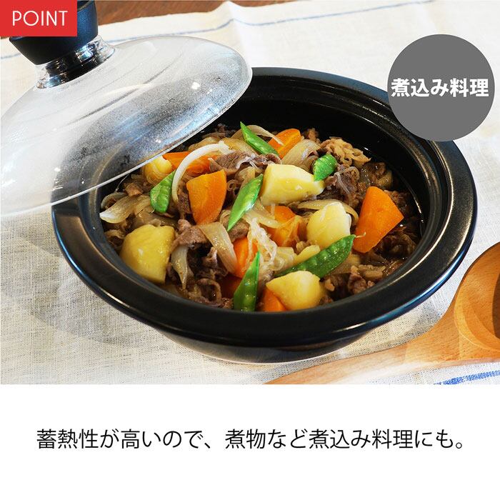 【素材】:鍋身/耐熱陶器、ツマミ/ポリプロピレン、フタガラス/耐熱ガラス
