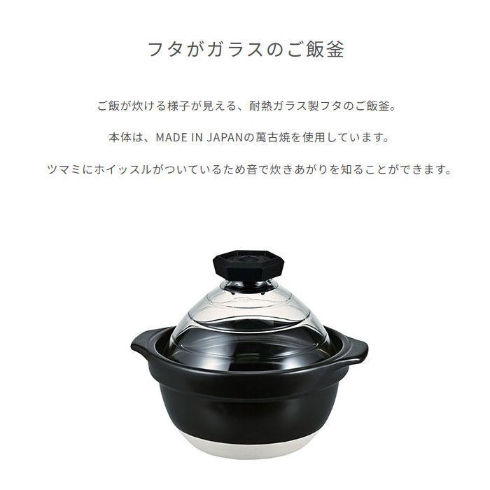 HARIO フタがガラスのご飯釜 2〜3合 ガス火 直火対応 人気 炊飯器 ガラス蓋 日本製 耐熱素材 ふっくら おいしい ご飯 北欧 おしゃれ 人気