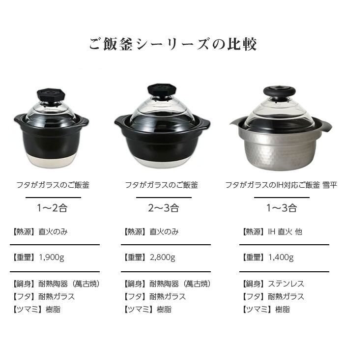 炊ける様子が見える、耐熱ガラス製フタのご飯釜。