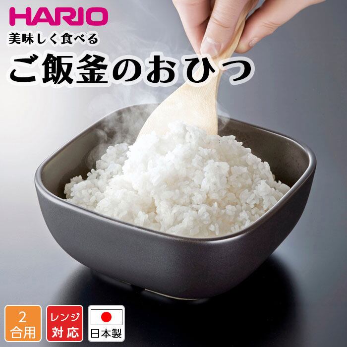 HARIO ご飯釜のおひつ 2合用 電子レンジ対応 角型 おひつ ごはん 萬古焼 日本製 北欧 おしゃれ 人気