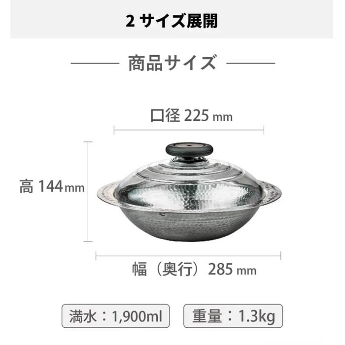 ステンレス鋼(クロム18% 底の厚さ1.2mm)