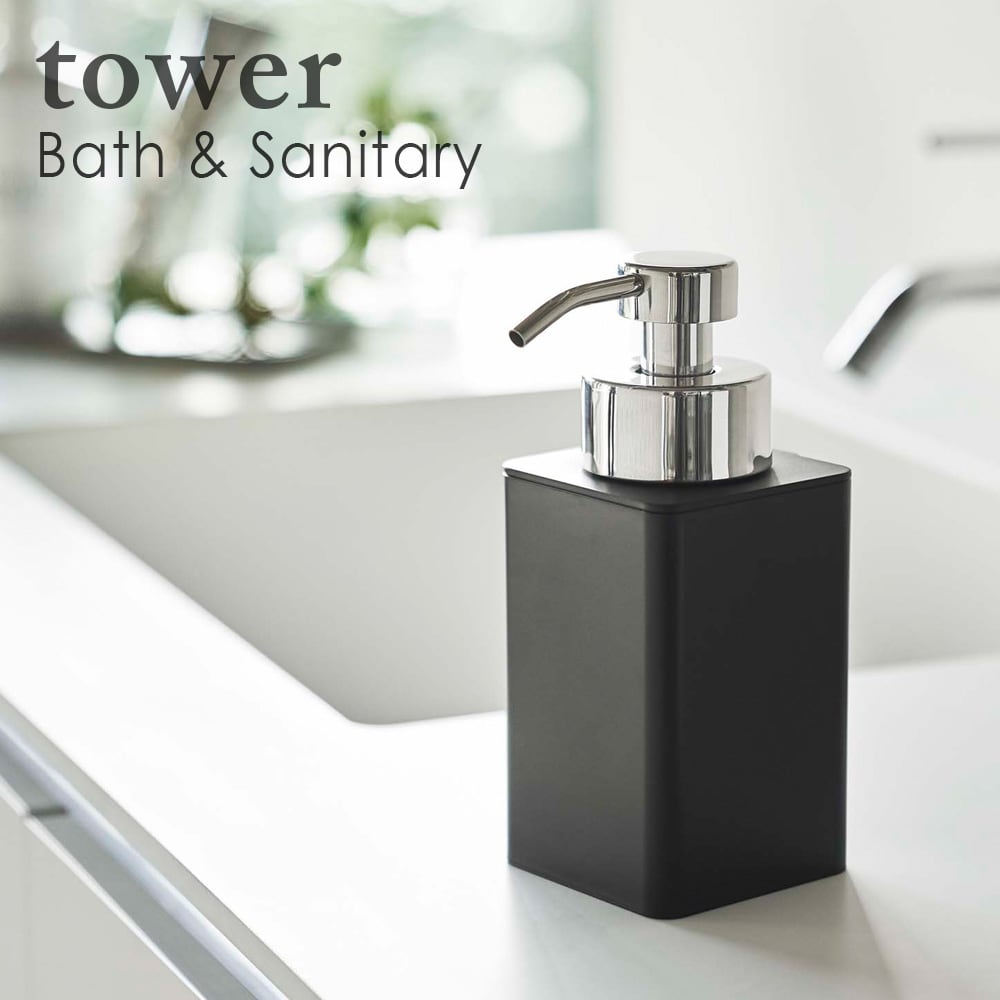 詰め替え用ディスペンサー タワー 泡タイプ ホワイト ブラック 山崎実業 北欧 モノトーン おしゃれ 人気