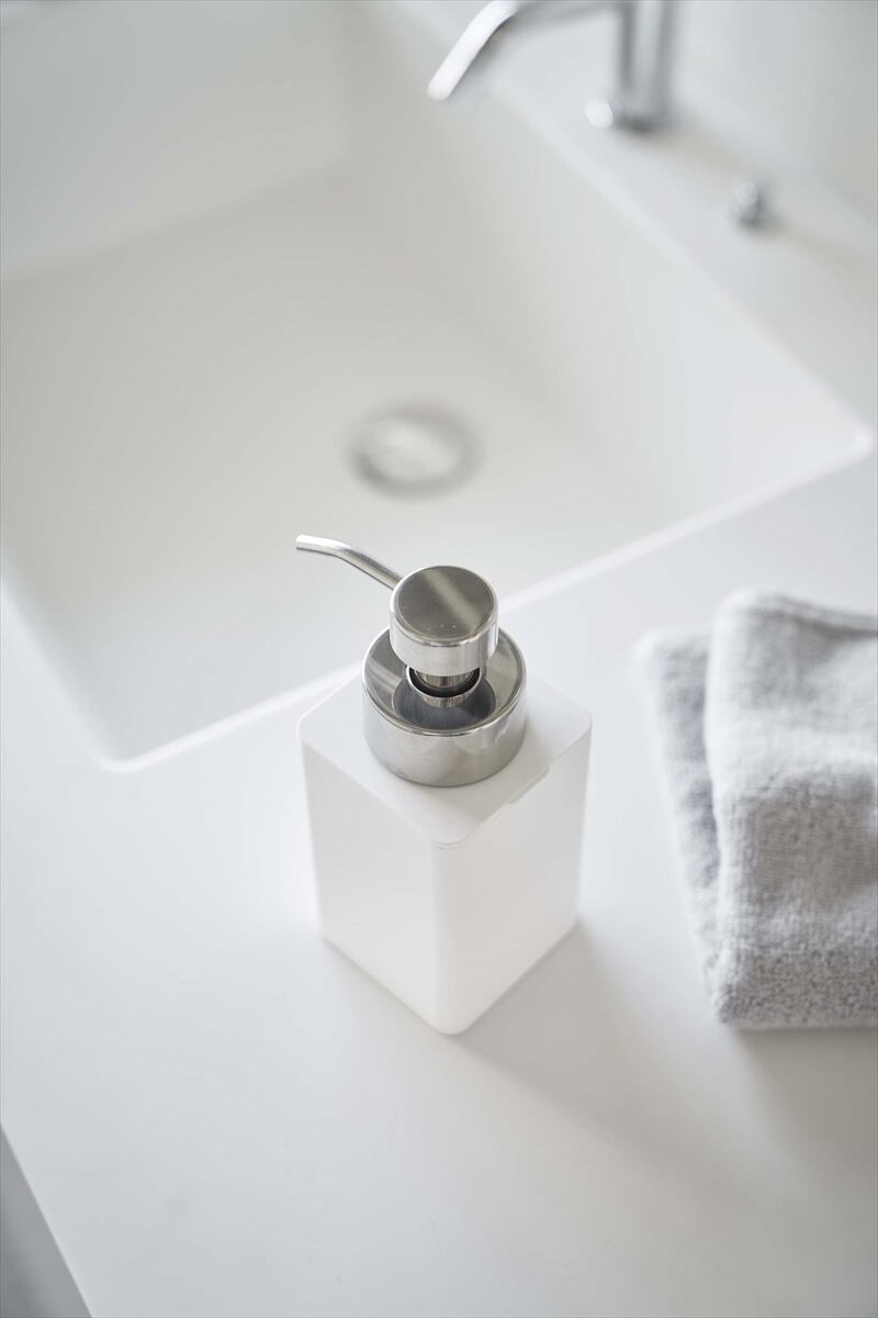 泡タイプ洗剤専用のディスペンサー。 蓋が外れるので詰め替え・お手入れが簡単。 置き場に困らないスタイリッシュな設計。