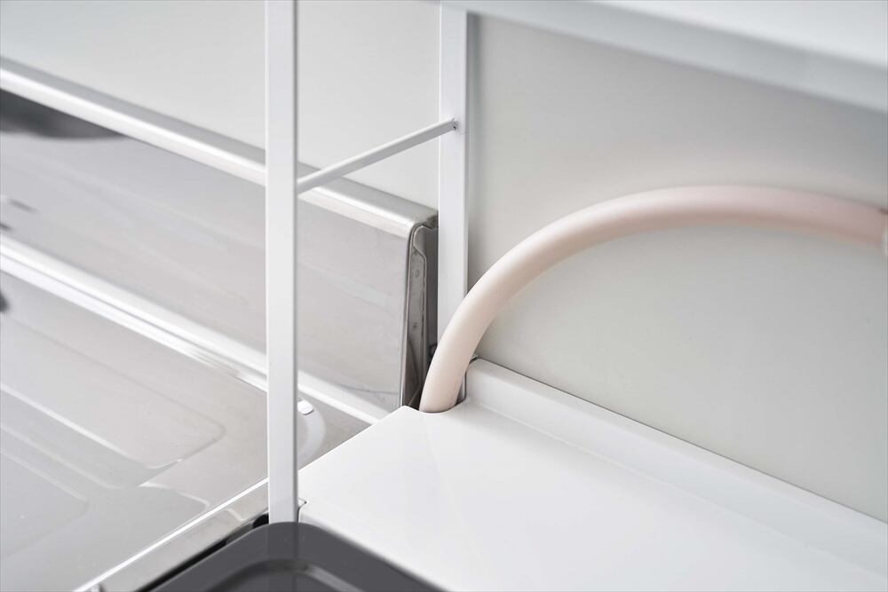 コンロ奥の隙間に置くだけ!油はねや調理汚れをしっかりガードしてくれる2段ラック。 調理道具やスパイスなどがたっぷり収納でき、ビルトインタイプのコンロ周りのラックとしても使えます。 棚板が上に開くので、設置したままガスの元栓の開閉が可能。