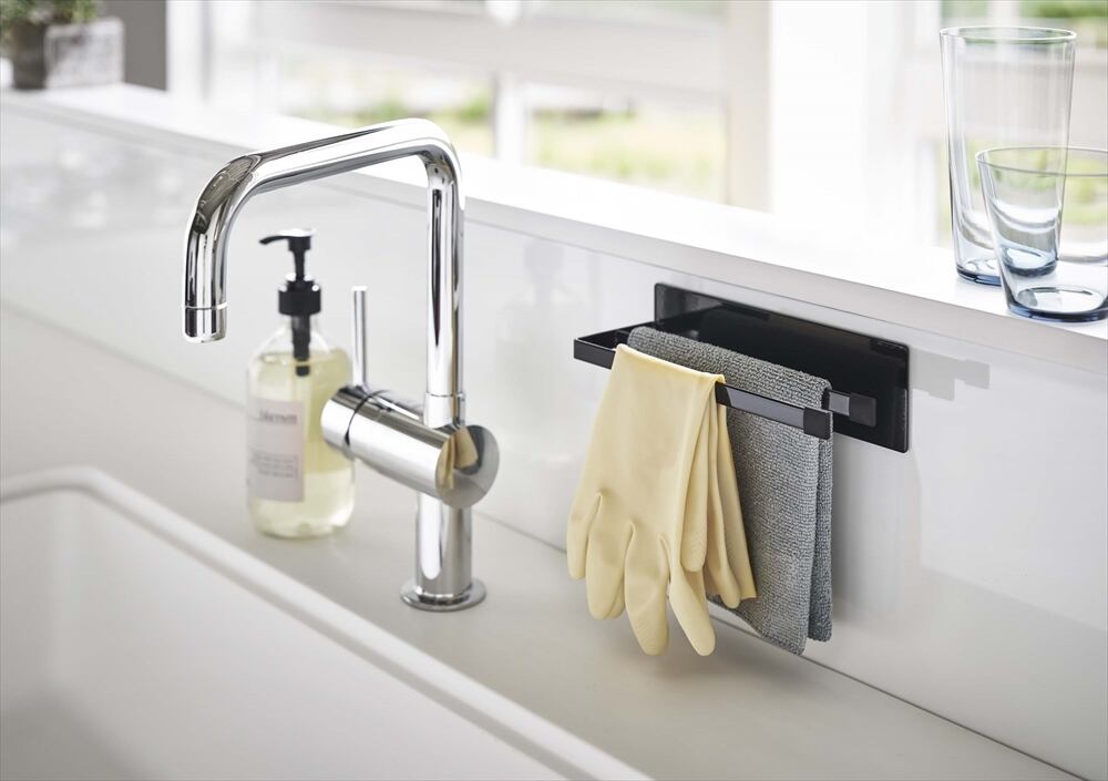マグネット布巾ハンガー タワー スリム ホワイト ブラック 山崎実業 北欧 モノトーン おしゃれ 人気