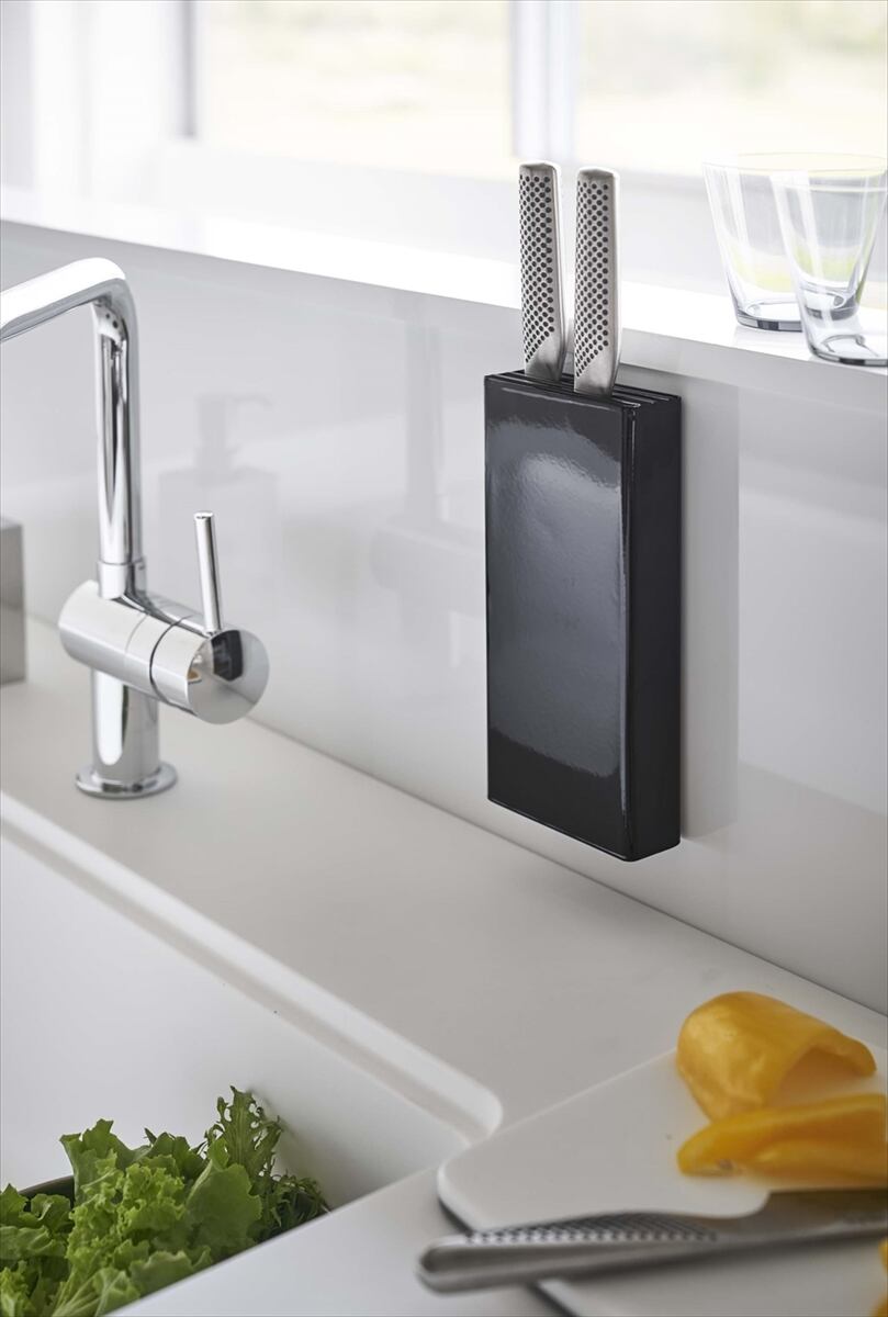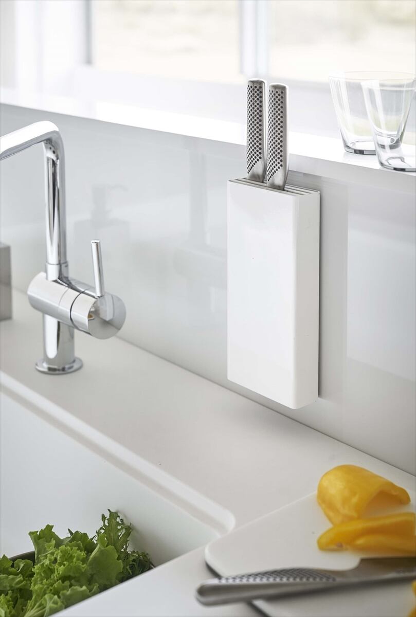 マグネット包丁スタンド タワー ホワイト ブラック 山崎実業 北欧 モノトーン おしゃれ 人気