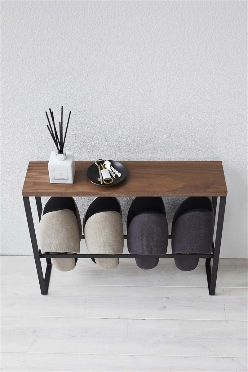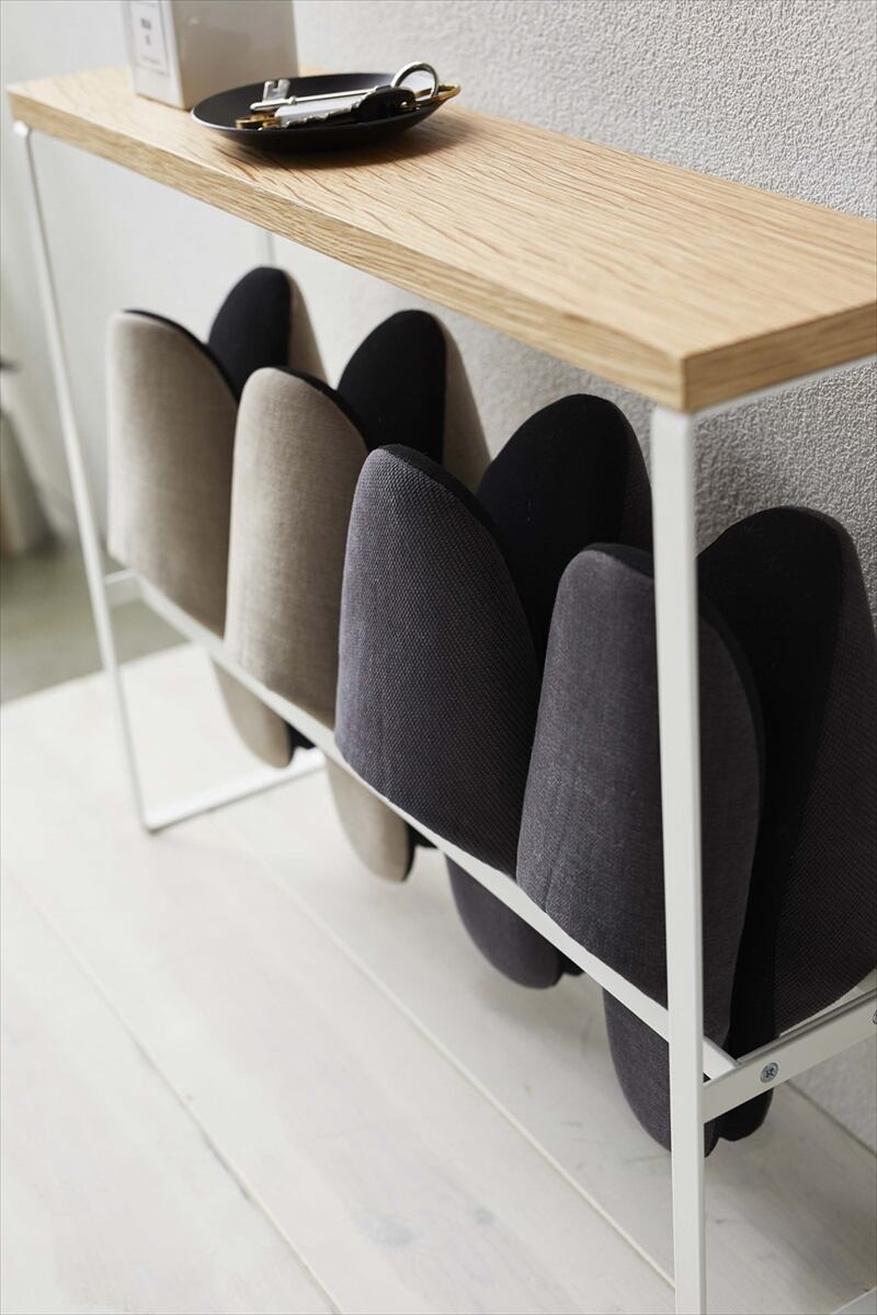 玄関先に便利な4足収納可能の天板付きスリッパラック。 鍵や小物、フレグランスなどを置くのに便利な天板。インテリアに合うスリムでスタイリッシュなデザインです。