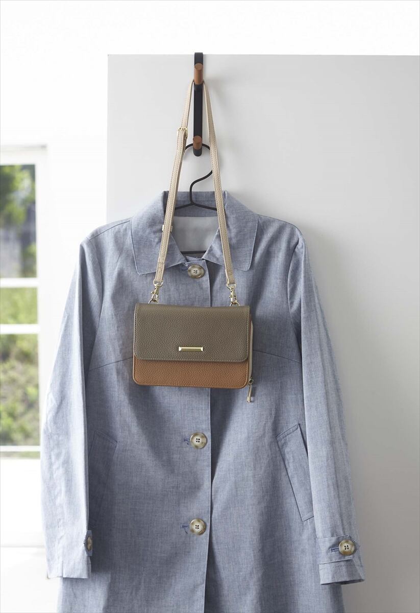 ドアや折れ戸に簡単取り付け! ハンガーや帽子、バッグなどをサッと掛けられるドアハンガー。 木の質感が上品なドアハンガーです。コンパクトなので、取り付けたままでも気になりません。