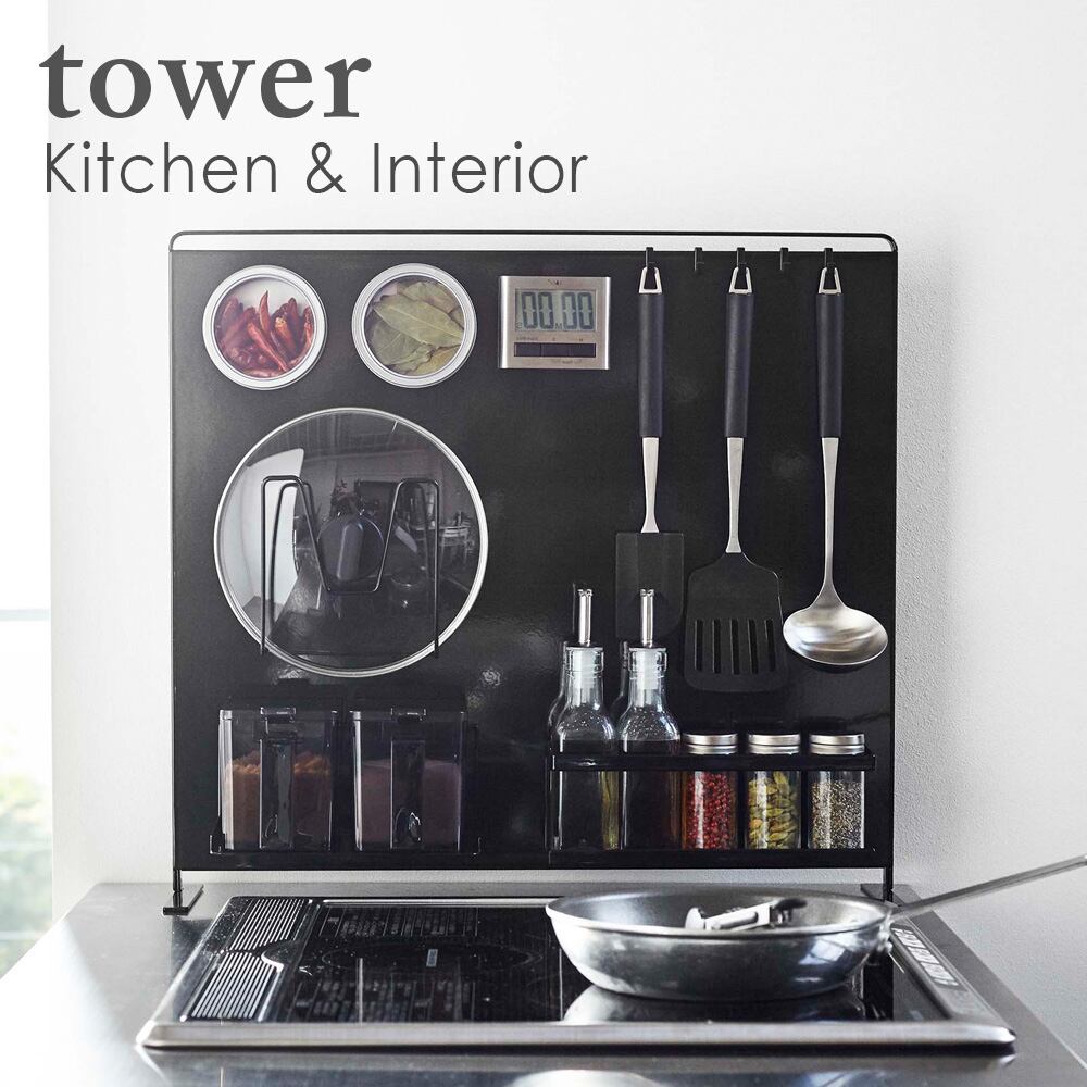 キッチン自立式スチールパネル タワー 縦型 ホワイト ブラック 山崎実業 北欧 モノトーン おしゃれ 人気