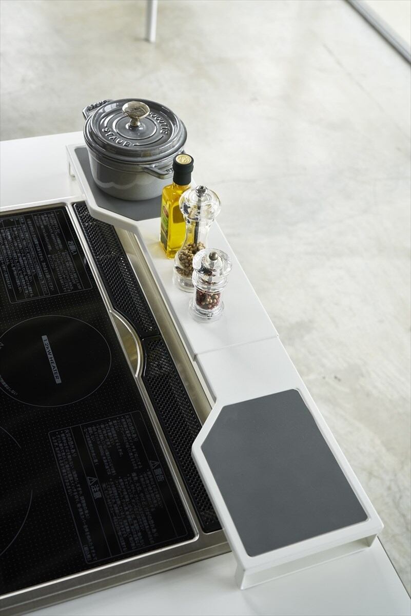 伸縮コンロ奥ラック プレート ホワイト キッチン おしゃれ 人気
