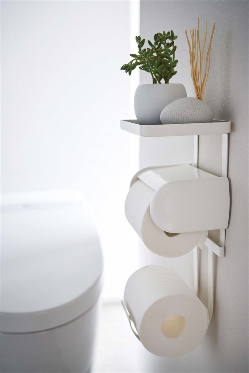 トイレットペーパーホルダー上ラック 2段 プレート ホワイト おしゃれ 人気
