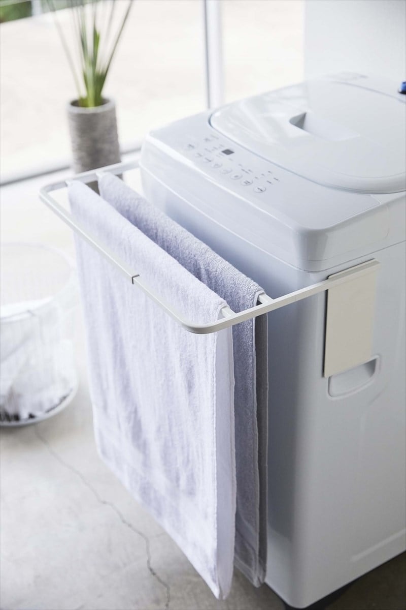 マグネット伸縮洗濯機バスタオルハンガー プレート ホワイト おしゃれ 人気