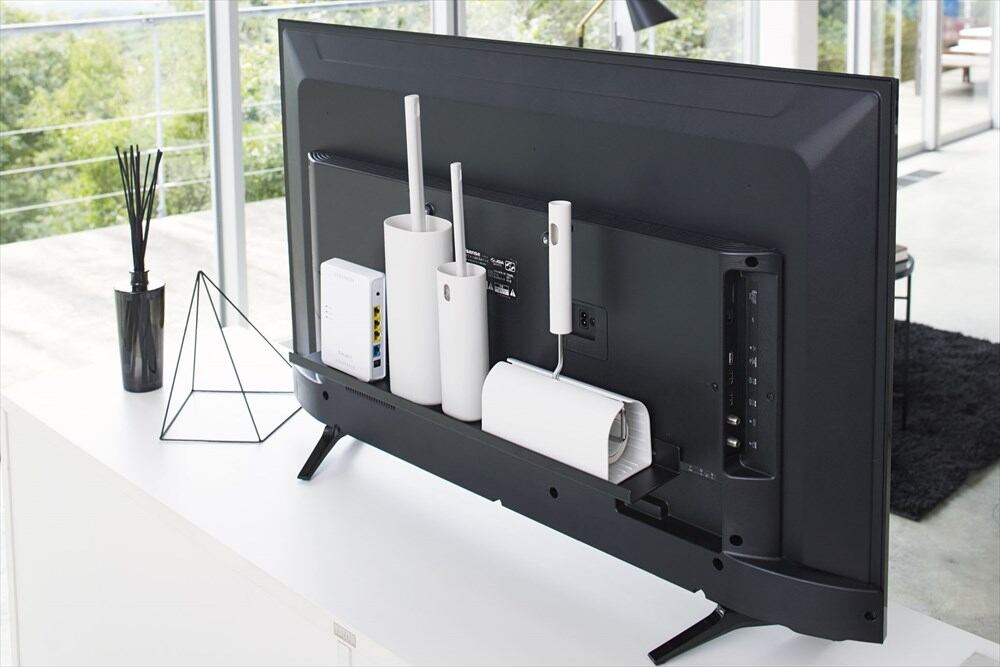 テレビの裏面に簡単取り付け!テレビ裏のスペースを有効活用。 スマートスピーカー(AIスピーカー)・リモコン・録画用HDD・ゲーム周辺機など、テレビ周りの小物が置けて便利。 ルーター・外付けHDD・電源タップなどをテレビ裏にすっきり一括収納。VESA規格対応。テレビ裏のネジ穴にねじ込んで固定するだけなので簡単に設置できます。テレビ裏で隠して収納できるのでテレビ周りをすっきりと整理整頓する事ができます。