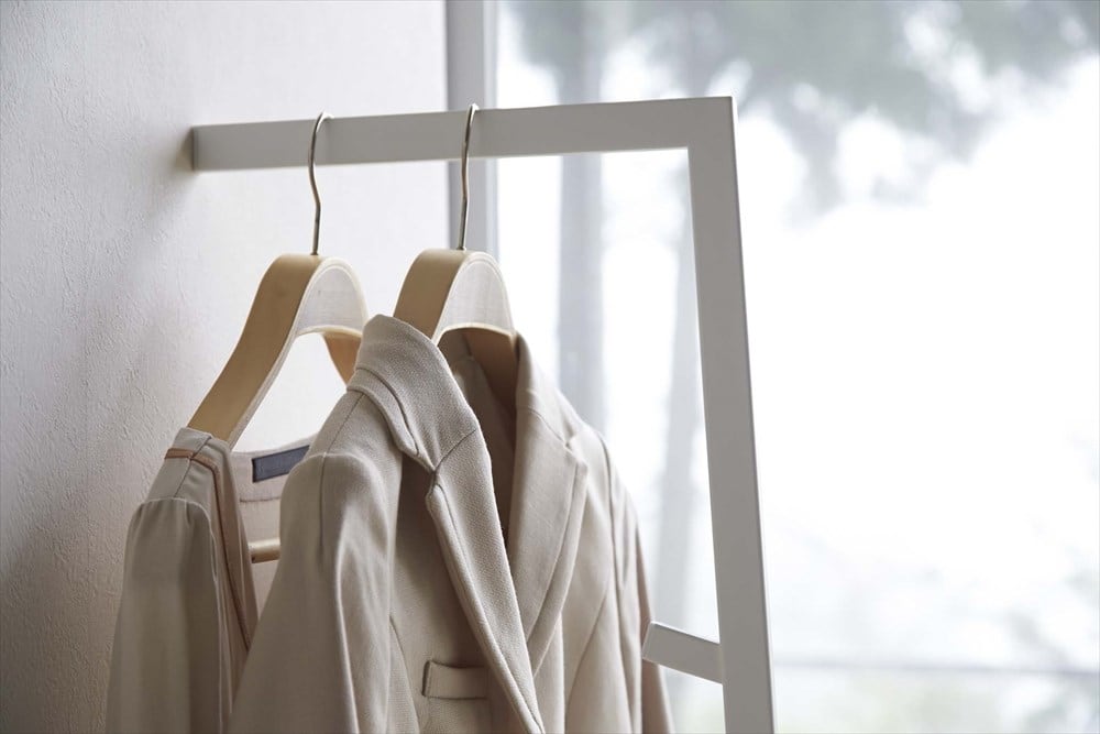 省スペース設計で置く場所を選ばない立て掛け式コートハンガー。片手で持ち上げられる軽さで、玄関やリビング、寝室など、壁さえあればどこでも使えて移動もラクラク。上着をちょっと掛けておきたい時に便利。帽子、鞄、スカーフなどを掛けられるフック付き。