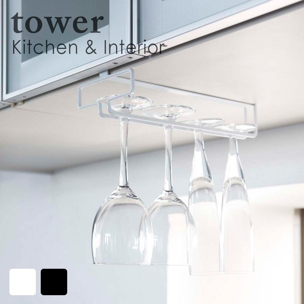 戸棚下ワイングラスハンガー タワー ホワイト ブラック キッチン おしゃれ 人気