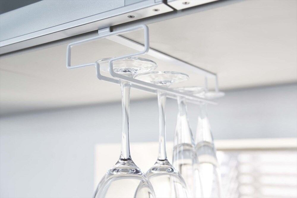 キッチン吊戸棚に取り付けるだけ。ワイングラスとシャンパングラスも収納可能。