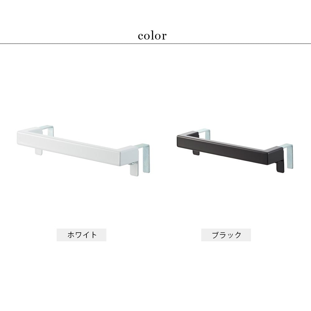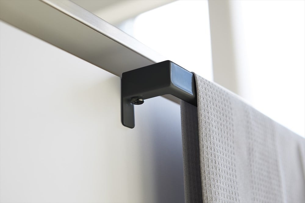 扉の厚みにぴったり調節できるスタイリッシュなタオルハンガー。取り付けフックを扉の厚みにぴったりと調節して固定するので、ガタつきが無く、しっかりと取り付けられます。キッチン・洗面所・トイレの扉などにシンプルでスタイリッシュなデザインのタオル掛けです。レールハンドルタイプの扉にも取り付け可能。取り付け幅が伸縮するので扉にぴったりフィット。ネジでしっかり固定するのでガタつきません。ワイドはタオルを折り畳まず掛けられます。