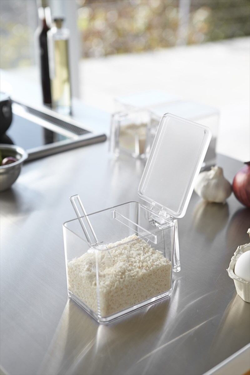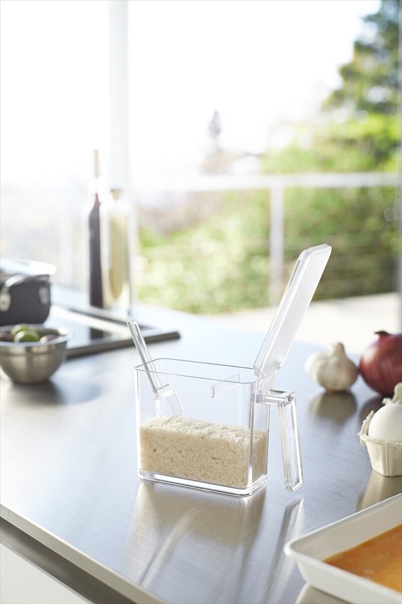 小さじ5mlがすり切れる調味料ストッカー。スミまですくいやすい容器の角は、洗いやすく、衛生的。