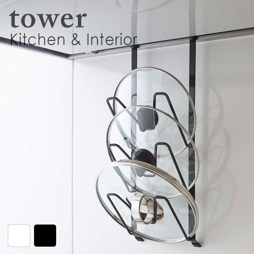 レンジフードなべ蓋ホルダー タワー ホワイト ブラック キッチン おしゃれ 人気