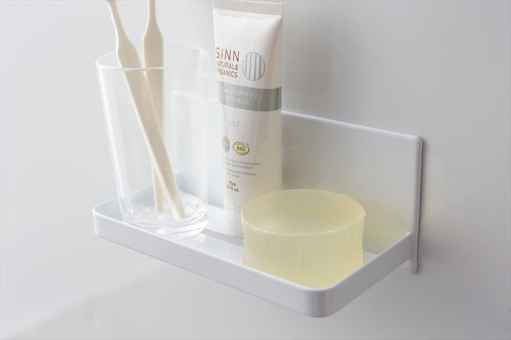 石鹸・歯ブラシ・タンブラーなどの収納にも。マグネットが付く浴室壁面に簡単取り付けのラック。ディスペンサーボトルの追加棚として便利。磁石がくっつく浴室壁面に簡単取り付けのバスシリーズ。壁面を傷付けにくく、錆びないラバータイプのマグネット。貼り付け位置が簡単に調節可能。